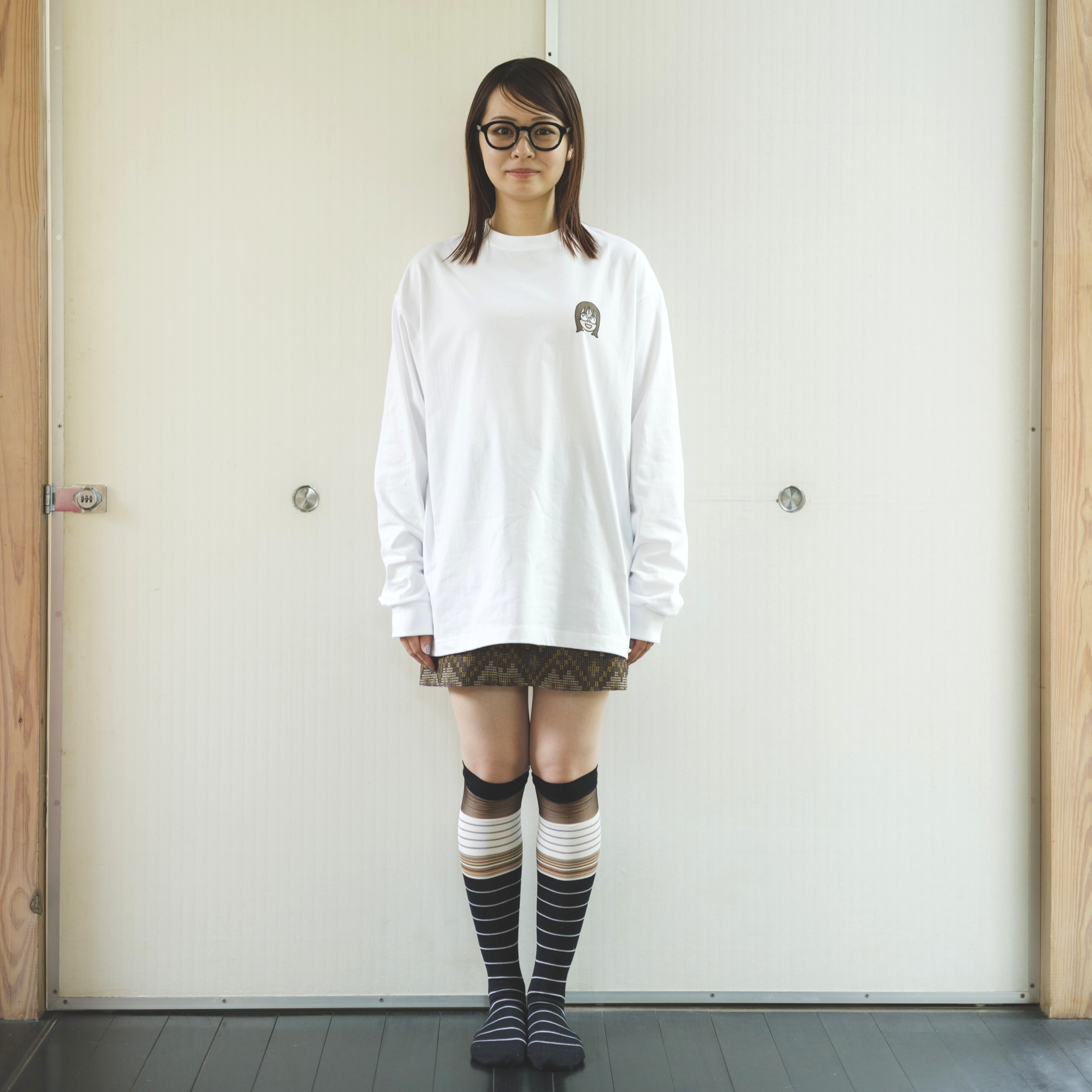 今回大きめなユニセックスでビッグシルエットなので、女性の方だったら、トップスはダボっとして、ミニスカートやショートパンツと合わせてそれを見せつつ、ロングブーツと合わせると可愛いなと思います。