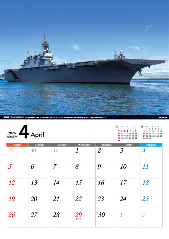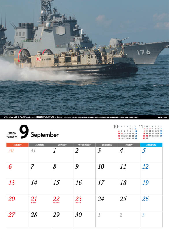 「将」海上自衛隊 A4 2026年 カレンダー CL26-0816