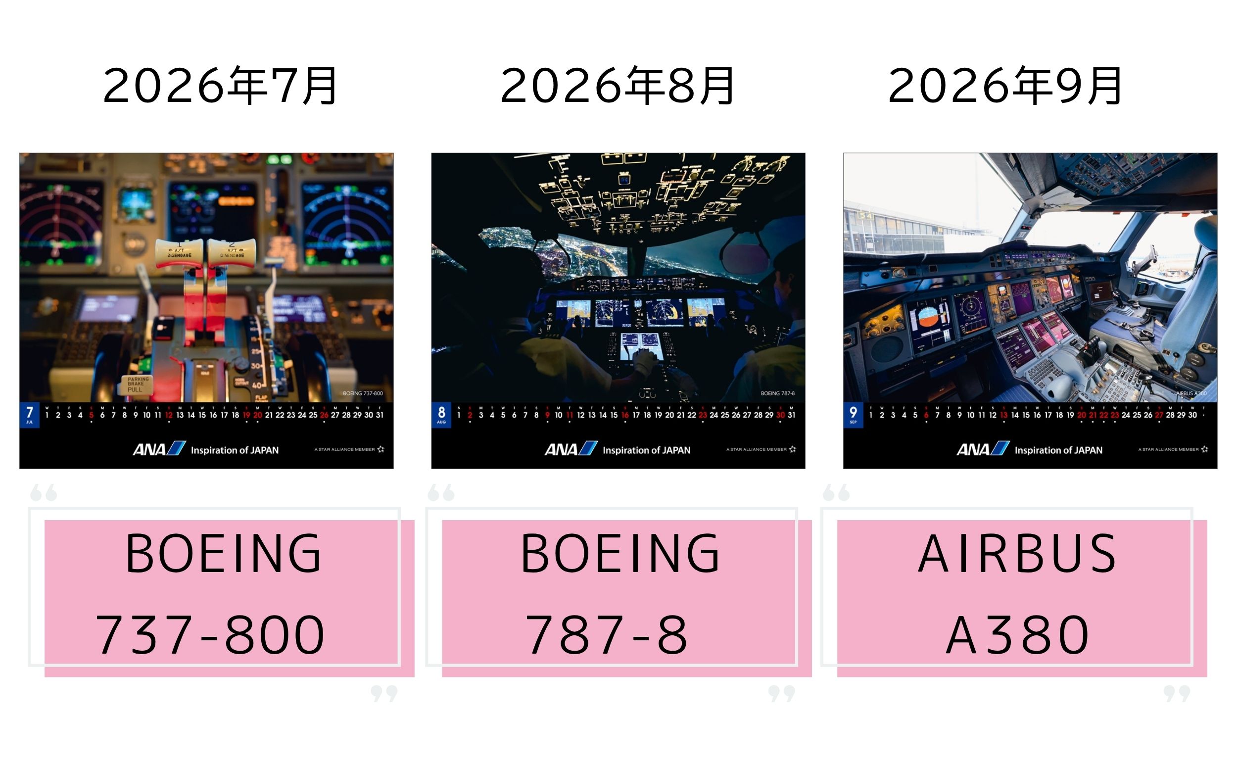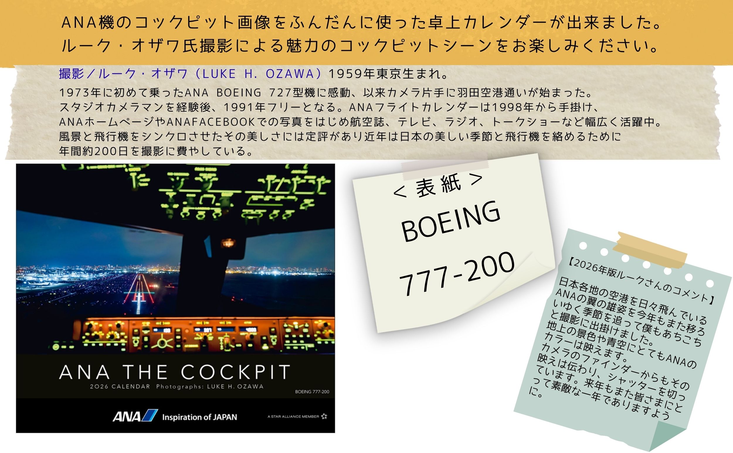 ANA機のコックピット画像をふんだんに使った卓上カレンダーが出来ました。ルーク・オザワ氏撮影による魅力のコックピットシーンをお楽しみください。